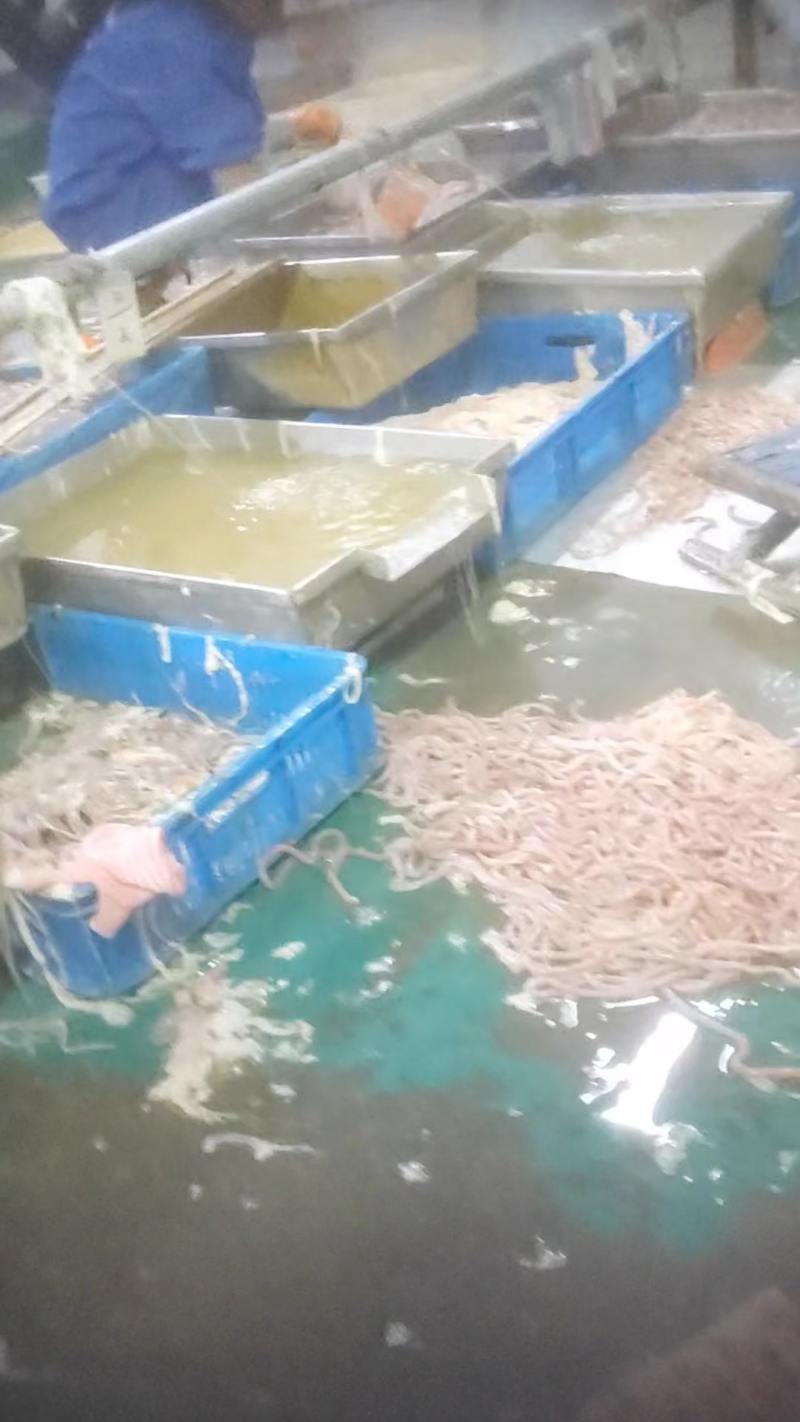 4月下旬,记者在没有办理健康证,也未被要求做任何体检的情况下,就进入雅士享公司的鸭肠生产车间工作,车间内弥漫着刺鼻的腥臭味,墙面上布满污渍,待清洗的鸭肠被直接堆在地面上,有工人在洗鸭肠时抽烟,并将抽完的烟头直接扔在盛放鸭肠的筐内。