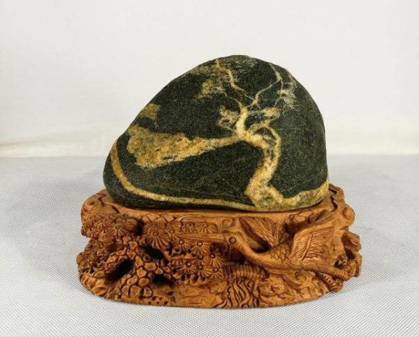 在2017年12月份以198万成交的泰山石“迎客松”,凭借优美的石型及图案,被封为“树神”,2019年,“迎客松”又传来好消息:经国石网评定,荣获“国石杯”2018年观赏石网络博览会金奖。这又给泰山石收藏者们带来一次惊喜!据了解,此方命名为“泰山迎客松”的泰山石是2017年底成交,由济南徐姓石友以198万元的高价转让给事业成功人士王女士,当时在泰山石圈中引起了不小的波动。在称赞泰山石精美的同时,为成交价格叫好,毕竟198万元不是一个小的数字。泰山石产于泰山山脉周边的溪流山谷,其质地坚硬,基调沉稳、凝重、浑厚,多以渗透、半渗透的纹理画面而出现,以其美丽多变的纹理又以年代久远的风化外形而著名,泰山石以其古朴、苍劲、凝重的格调名扬海内外,又加上民间有泰山石能避邪、镇宅等传说,取稳如泰山,石来运转之意,泰山石近年来已成为炙手可热的风水石。这方泰山石,近看美,远观动,有“迎客松”“摇钱树”“发财树”、“许愿树”等众多含义,画面简单,恰似一美女在跳舞,动感十足,优美的舞姿联想到众多神话,让人看后心情愉悦。