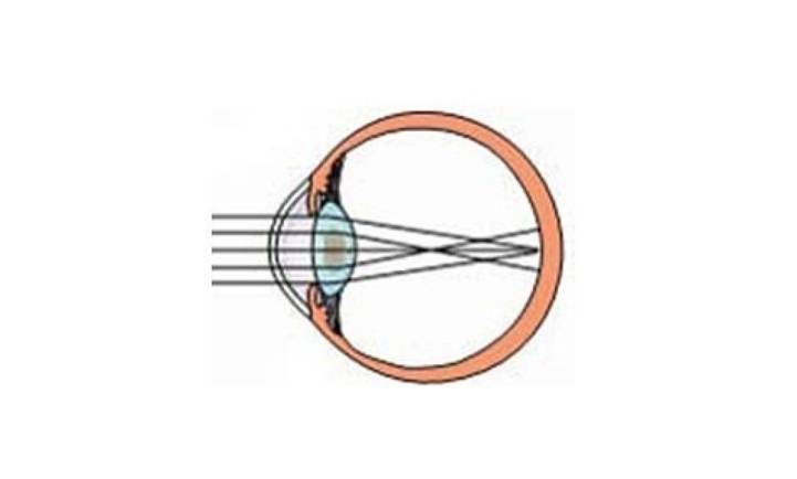 曲率性近视:某一屈光体的表面曲度增强、曲率半径变小而使屈光力增强所引起的近视,如圆锥角膜、球形晶体等。如下图: